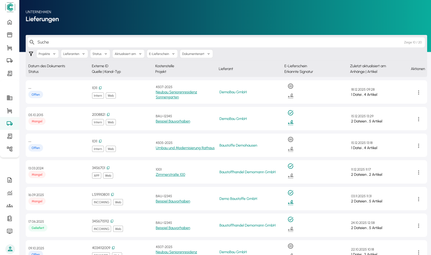 Lieferungen werden direkt digital erfasst und zentral gespeichert – unabhängig vom Lieferantenformat.