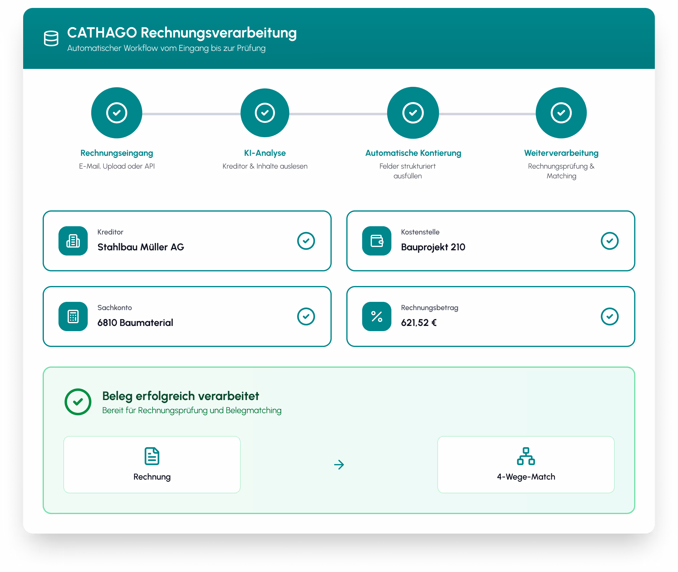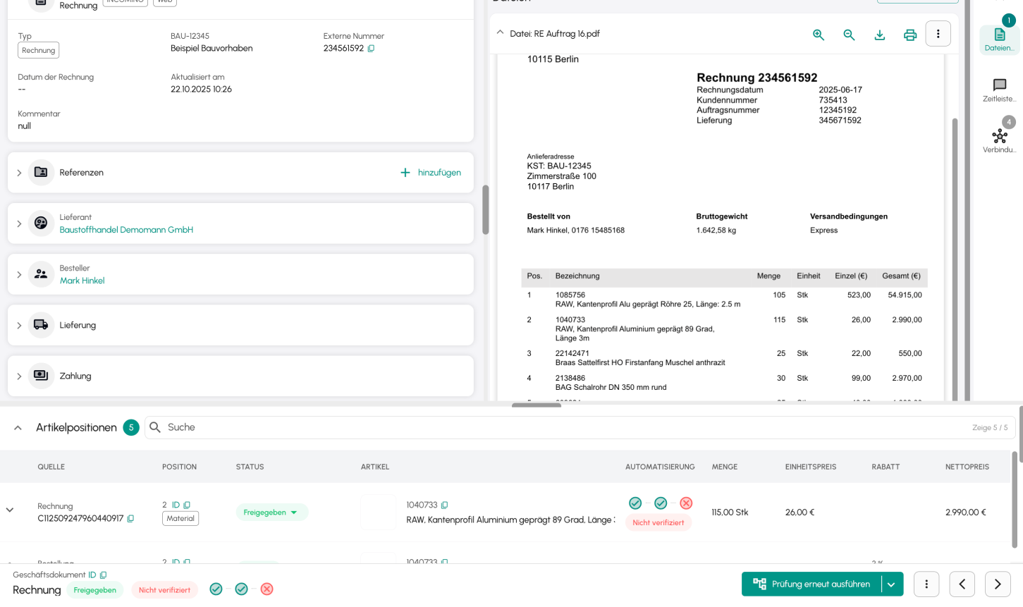 Rechnungen werden automatisch erfasst, geprüft und mit Bestellung und Lieferschein abgeglichen – schnell, korrekt und ohne manuellen Aufwand.