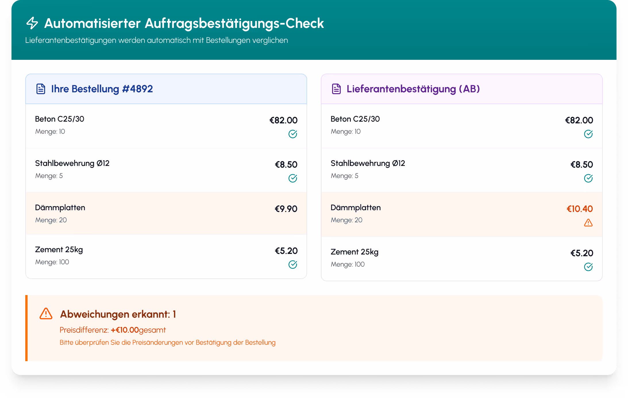 Lieferanten-ABs werden automatisch mit der Bestellung in CATHAGO abgeglichen und Abweichungen markiert.